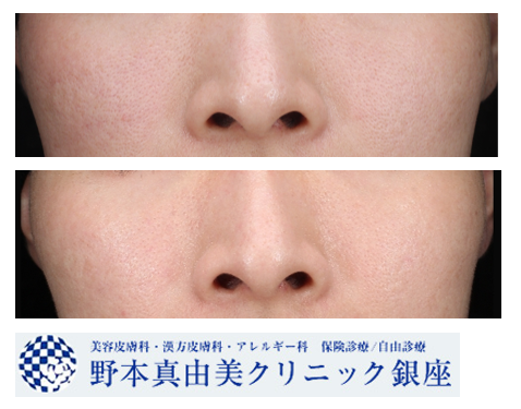 赤みの減少と、頬と鼻の毛穴が縮小していることが分かります。